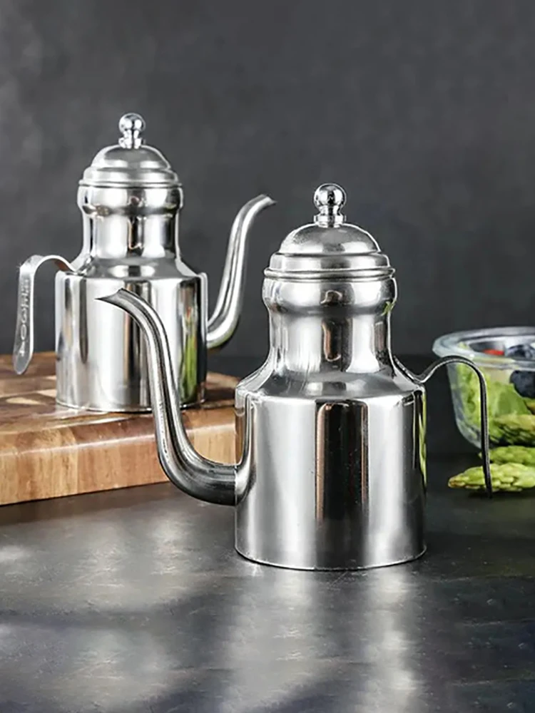 Stainless Steel Olive Oil Dispenser Bottle310ml/500ml Drip-Free Pouring Oil Pot Storage Container for Salad and Kitchen Cooking